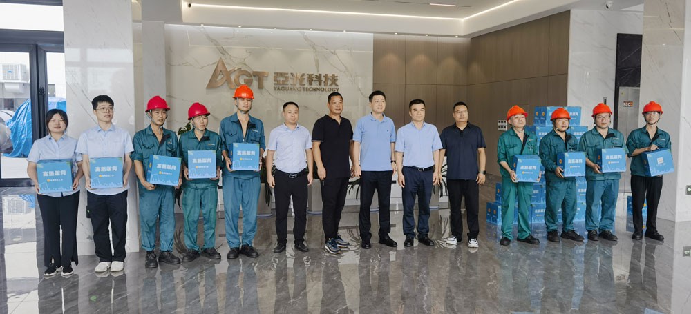 八月以來,溫州天氣持續(xù)高溫,為切實做好防暑降溫工作,確保一線員工的身體健康,保障安全生產(chǎn),8月23日,龍灣區(qū)總工會黨組書記、常務副主席潘建華一行赴亞光股份開展高溫慰問活動,為酷暑下仍堅守崗位的一線職工送來清涼和問候。亞光股份董事長陳國華、人力行政總監(jiān)劉玉堂參加活動。